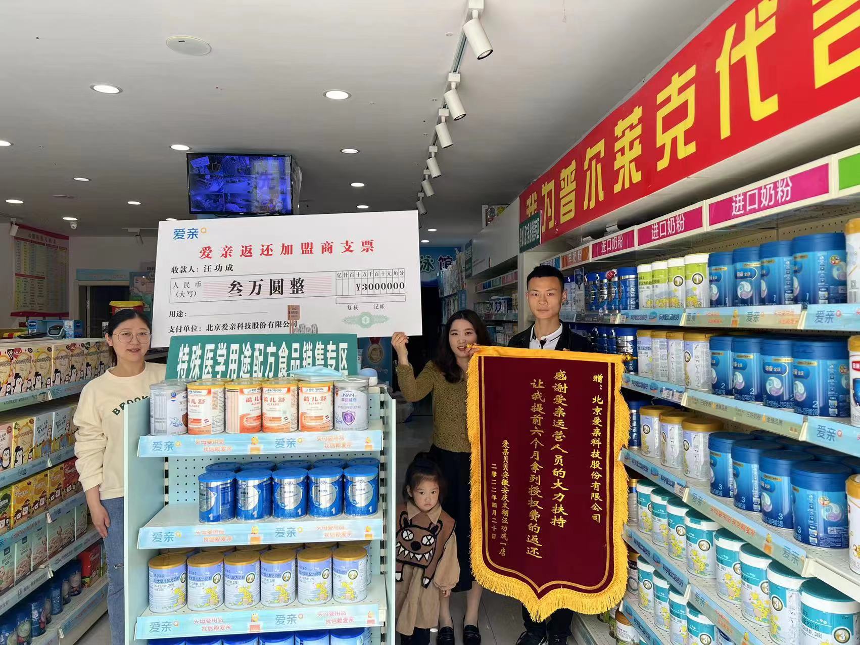 恭喜安徽汪功成1店获得第一次爱亲品牌授权费返还!预祝生意兴隆!